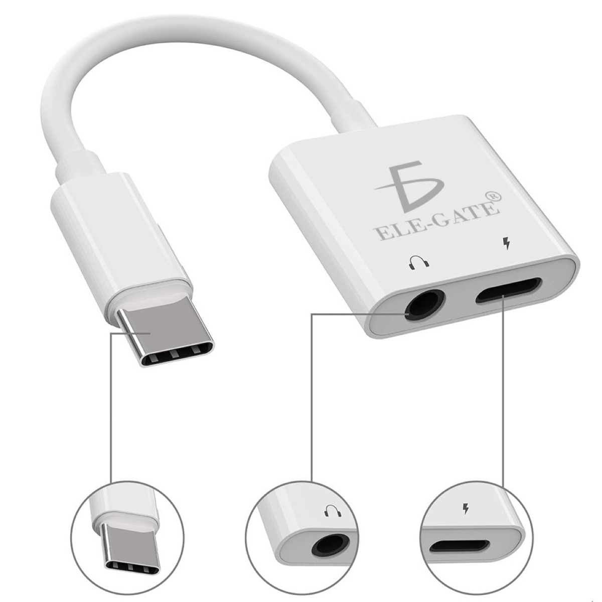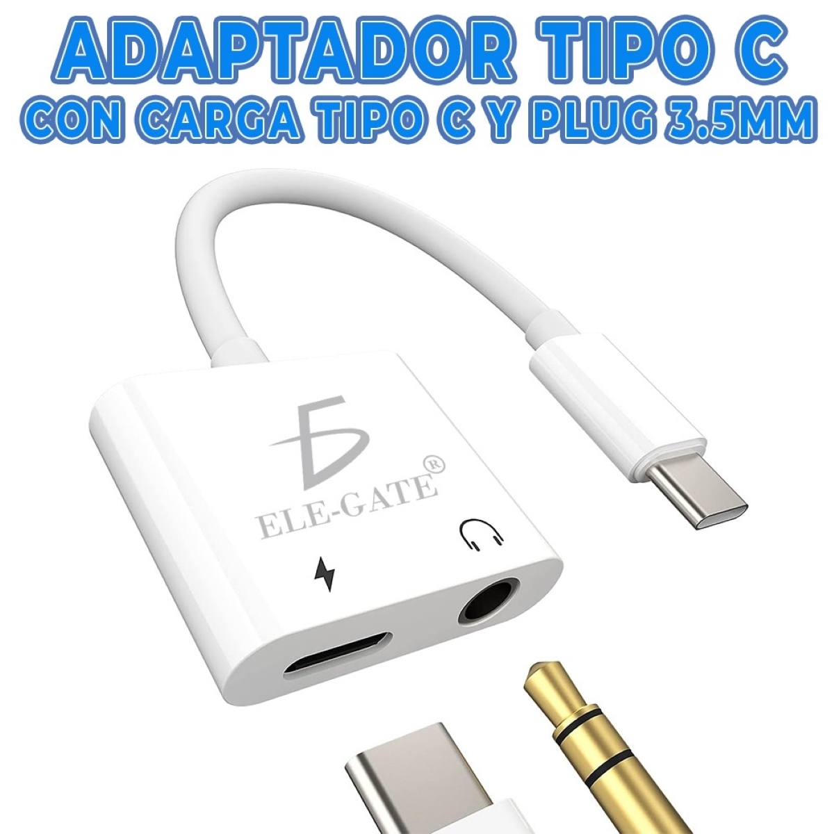 adaptador auxiliar 3.5 a tipo c audio y carga unido oem