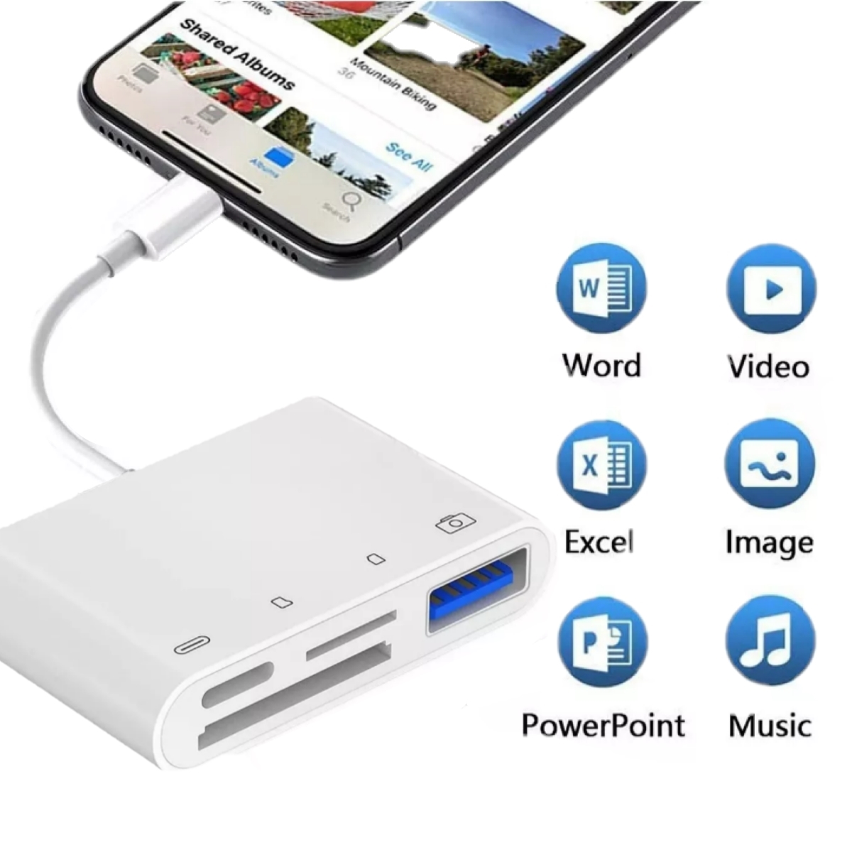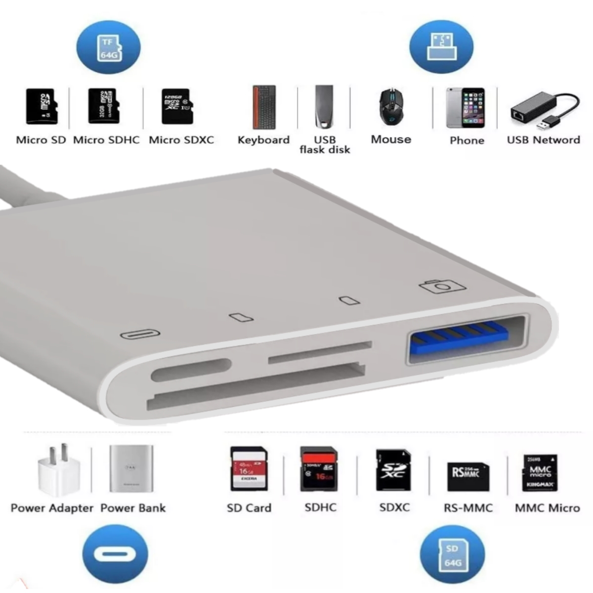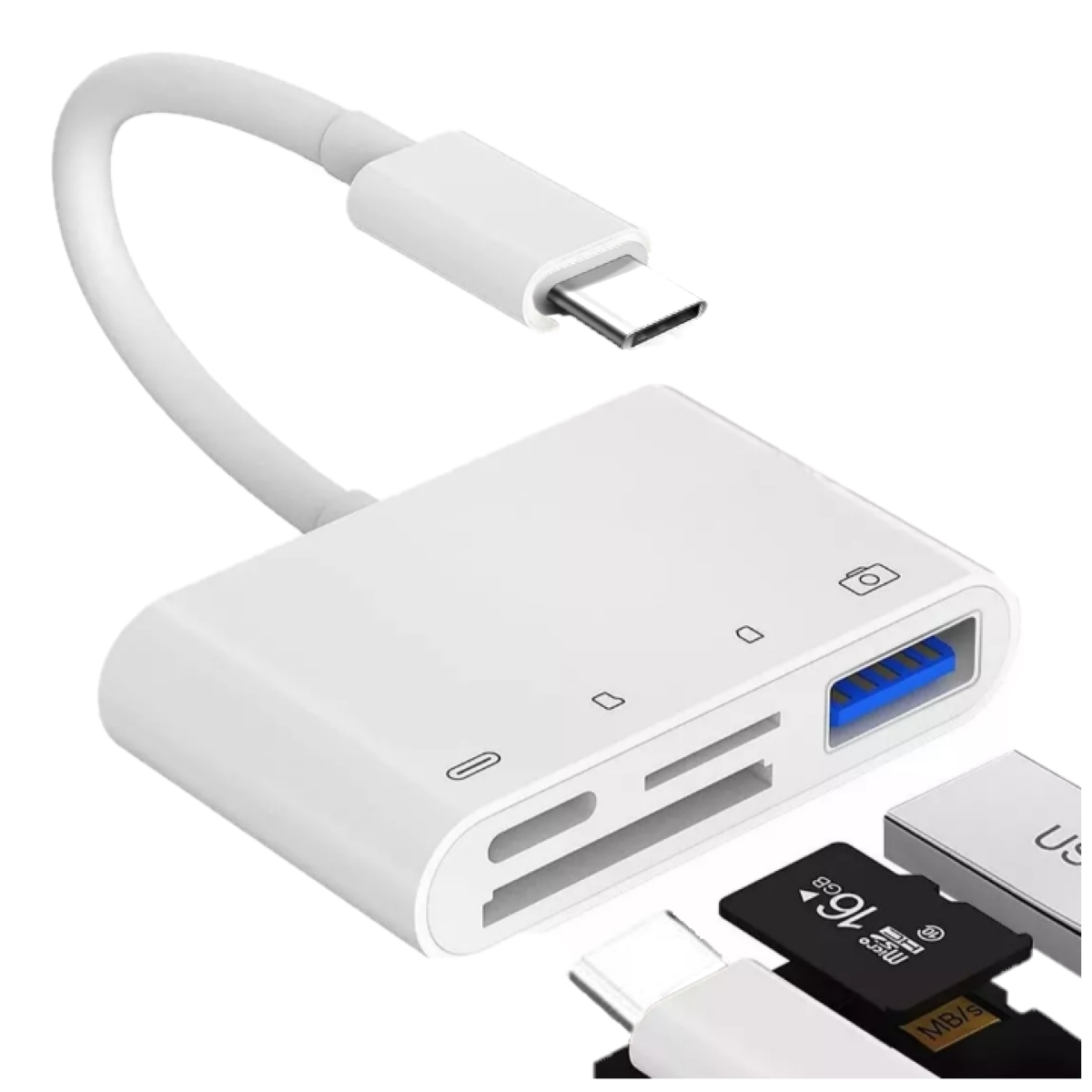 Para lectura de MicroSD Y SD de hasta 512gb, o de USB 3.0, y Tipo C, multifunción de conexión de 4 a 1 para cargar o conectar datos, 15 cm de longitud precio 199.00 MXN sin costo envío San Luis RC