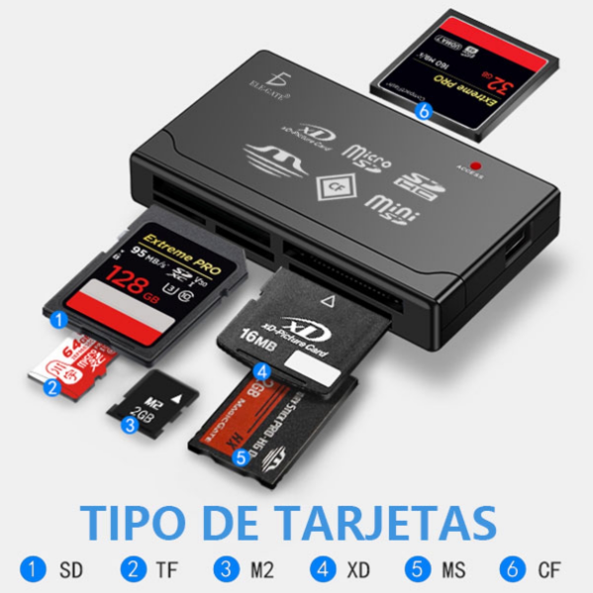 Conecta a tu PC o laptop por medio de USB con su cable incluido de 42 centímetros para transferir documentos, música, fotos, videos desde y entre Memorias Micro SD MMC, RS-MMC, Mini SD, T-Flash, MS, MS PRO, MS Dúo, MS PRO Dúo y M2, compatible con Linux, Windows, macOS, capacidad 120 GB precio 129.00 MXN Envío San Luis RC MX:Sonora:Ground:20.00 MXN