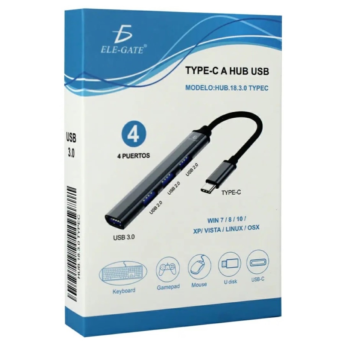 adaptador multiple hub tipo c 4 usb 3.0 y 2.0 ele gate