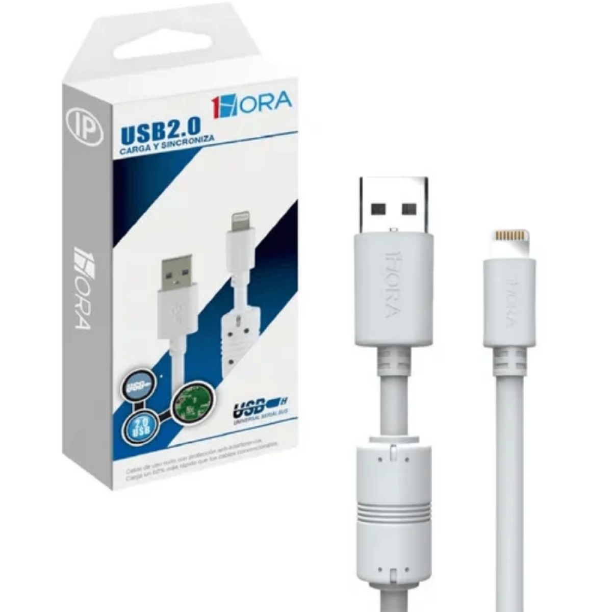 Con filtro de pirita para evitar interferencias y de grosor mayor del normal para uso rudo, funciona para carga de 5a. 2v. y transferencia de datos en equipos de conexión lightning, 150 cm longitud