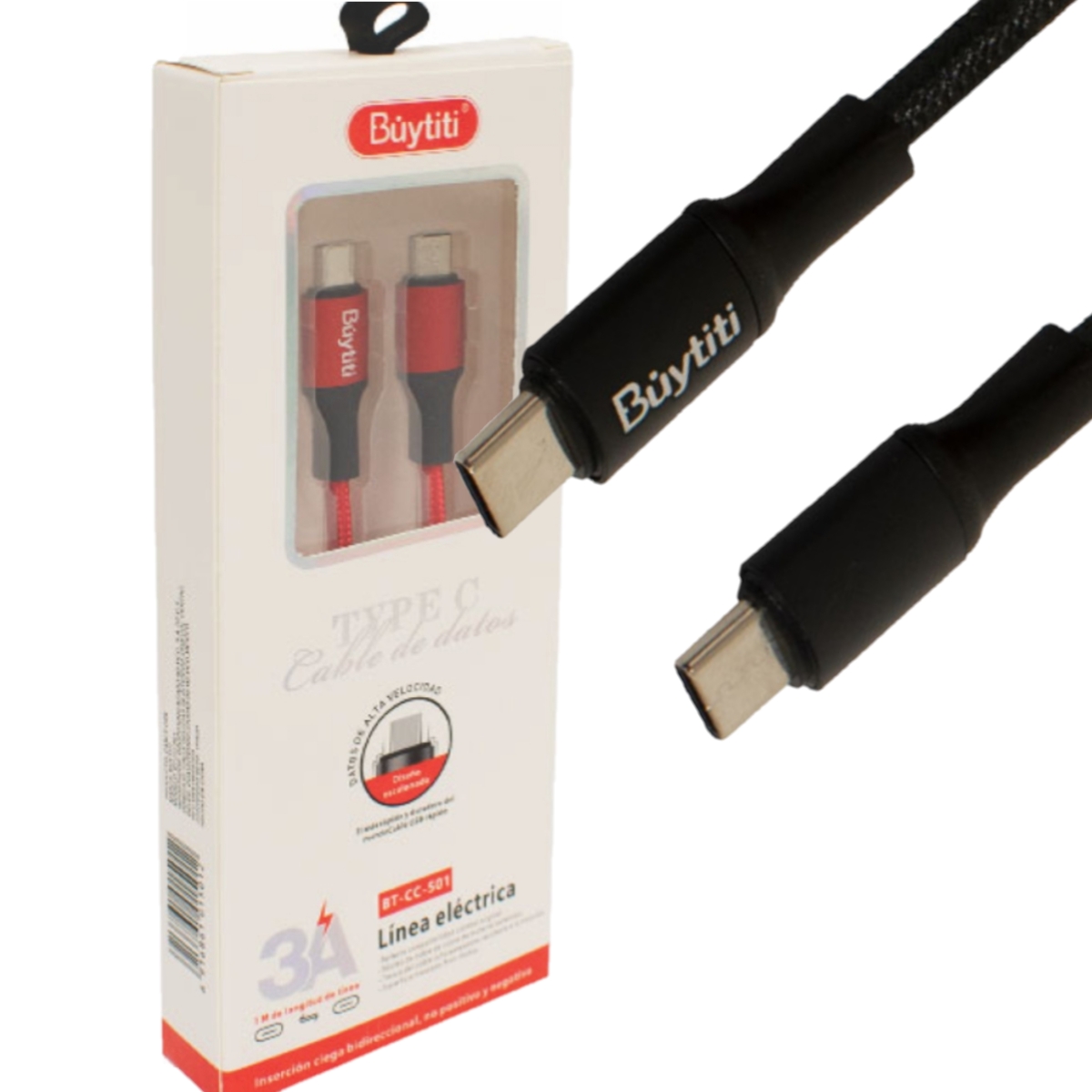 cable de carga tipo c a tipo c 1m 3a bt cc 501 buytiti