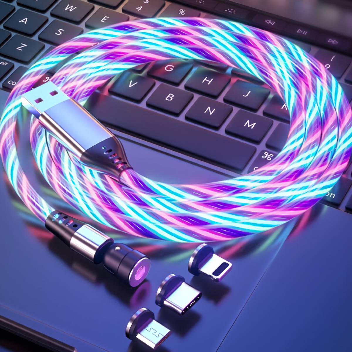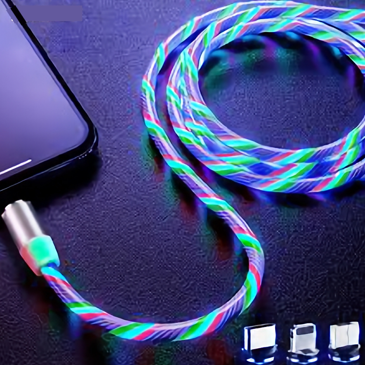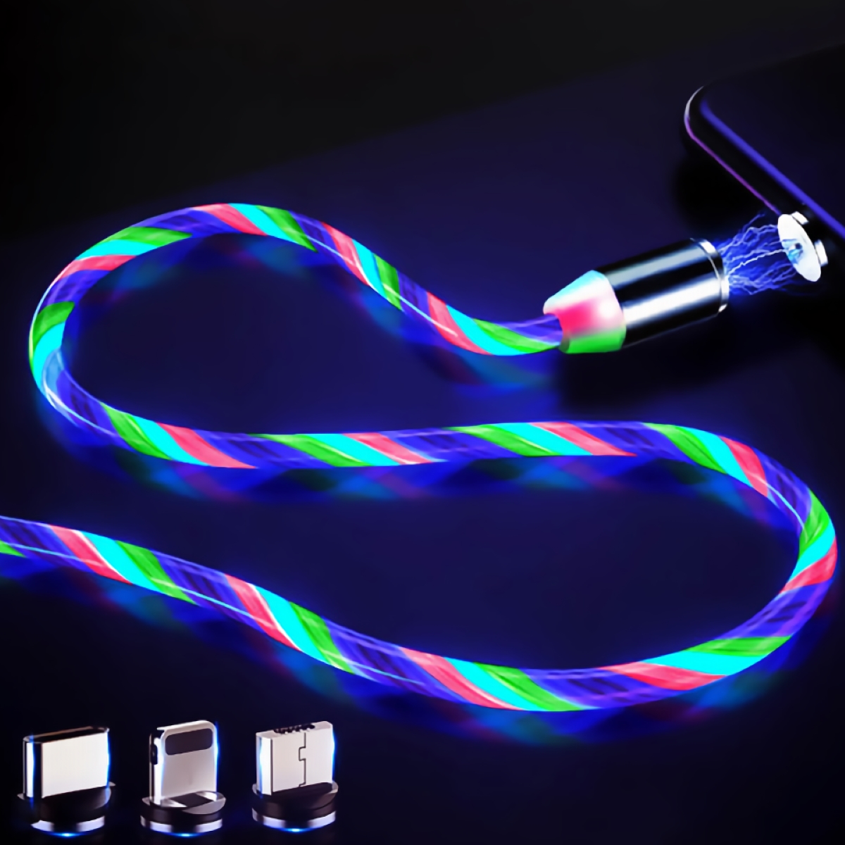 cable de carga usb a 3 puntas ip tc v8 magnetic luminoso rgb