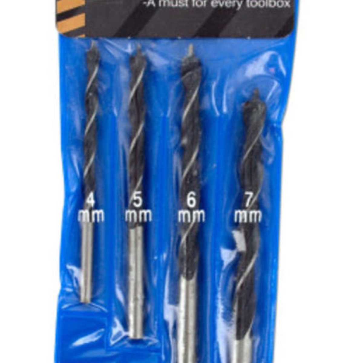 Resistentes por su material de elaboración 4 piezas de brocas para madera en los siguientes tamaños: 4 mm, 5 mm, 6 mm y 7mm. El juego está empacado en una bolsa de vinilo con funda precio 89.00 MXN Envío San Luis RC MX:Sonora:Ground:40.00 MXN