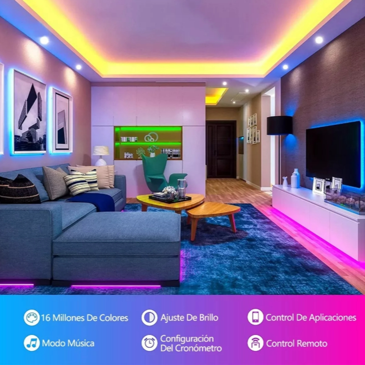 Decoración en interiores Bluetooth y compatibilidad con la aplicación Lotus Lantern inteligente para asistente virtual y configurar las luces al ritmo de la música, personalizar el color, cuenta con memoria de configuración para programar que prendan o apaguen programado, son 2 de 10 metros precio 289.00 MXN sin costo envío San Luis RC