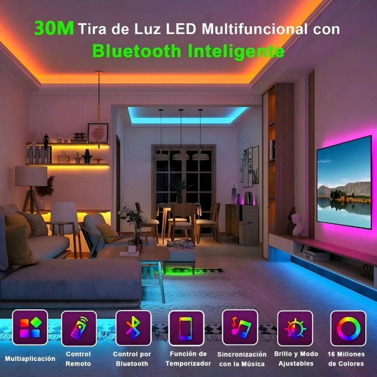 tira de luces led rgb bluetooth 30m gluckluz