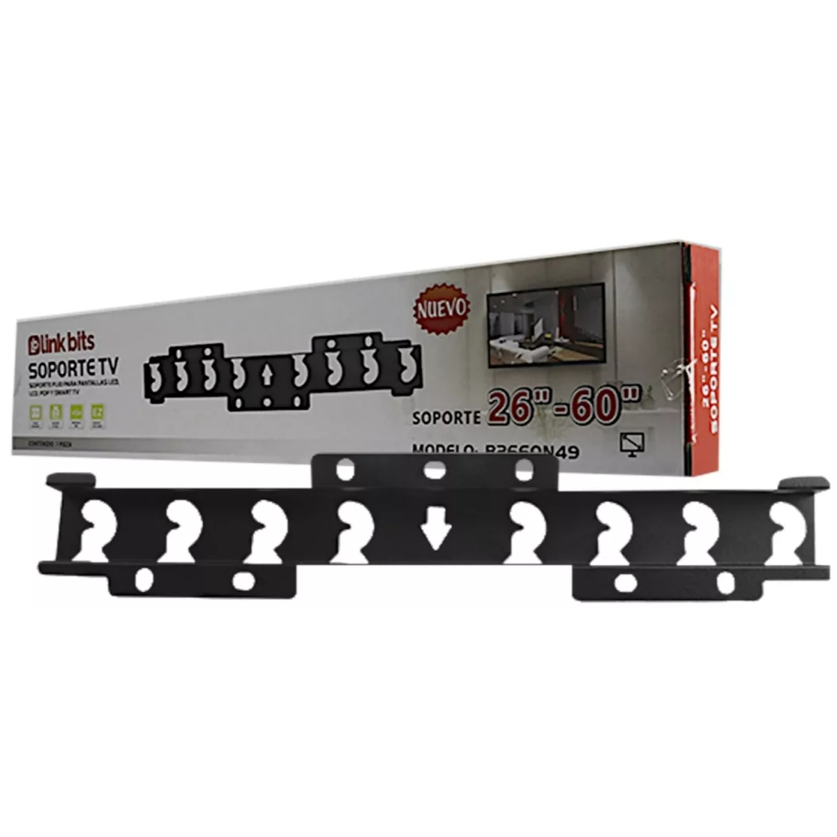 Para montaje fijo en la pared de Televisores, Monitores, pantallas LED, LCD, y Smart de 26 a 60 pulgadas con un peso máximo de 25 kilos cumple con el estándar VESA marca, Incluye tornillería para instalación