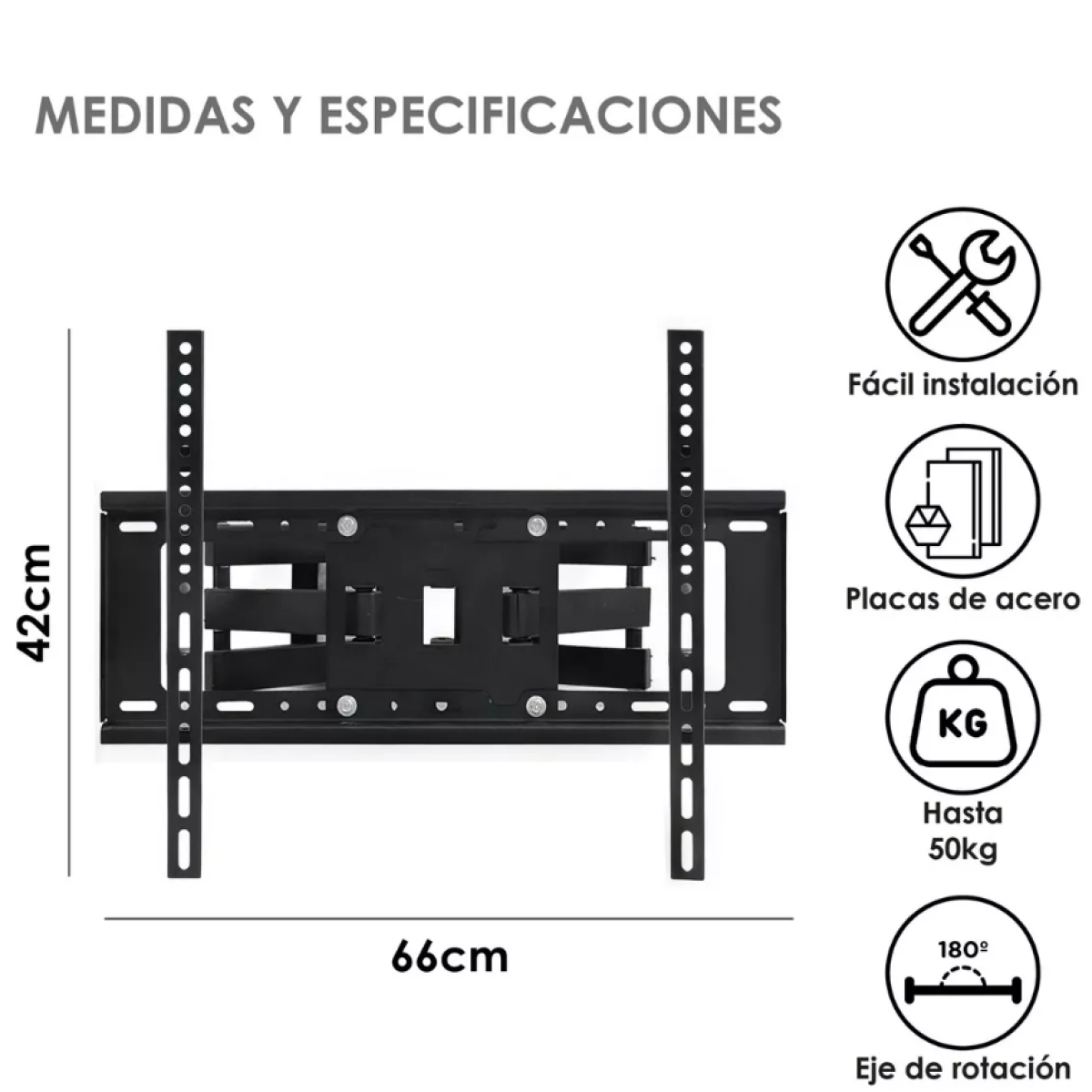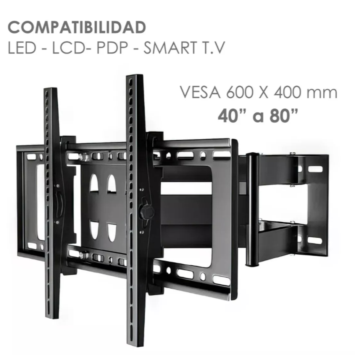 Doble brazo diseñado para televisores de 40 a 80 pulgadas estándar VESA hasta 600x400, Incluye todas las herramientas y accesorios necesarios para una instalación rápida y sencilla tiene rotación de 180° y 15° arriba o abajo precio 589.00 MXN sin costo envío San Luis RC